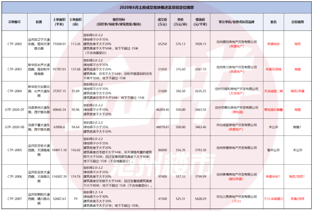 在刚刚过去的六月沧州城区内8宗住宅地成功出让,总面积900余亩,这意味着百万余平的新房供应。摘地房企其背景多为沧州购房者熟悉的老面孔,荣盛、碧桂园、天成坐稳市区土地储值新三强。