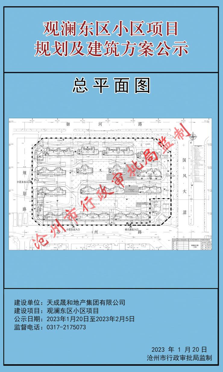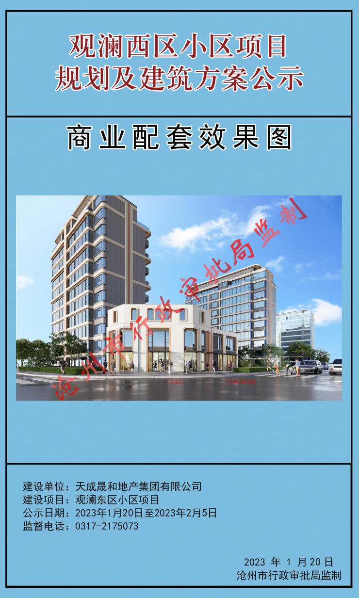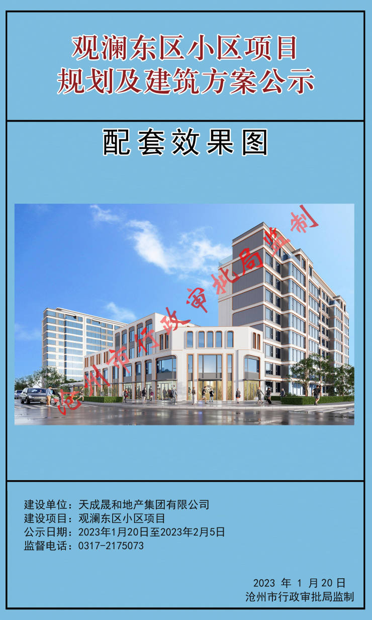 1月20日,沧州市行政审批局发布了对于天成观澜东、西区项目和嘉和广场项目的批前公示。