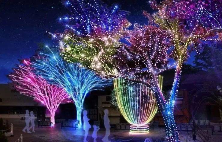 五彩斑斓奇幻林木,沉浸式感受梦幻的夜间氛围,点燃仲夏之夜的美好。